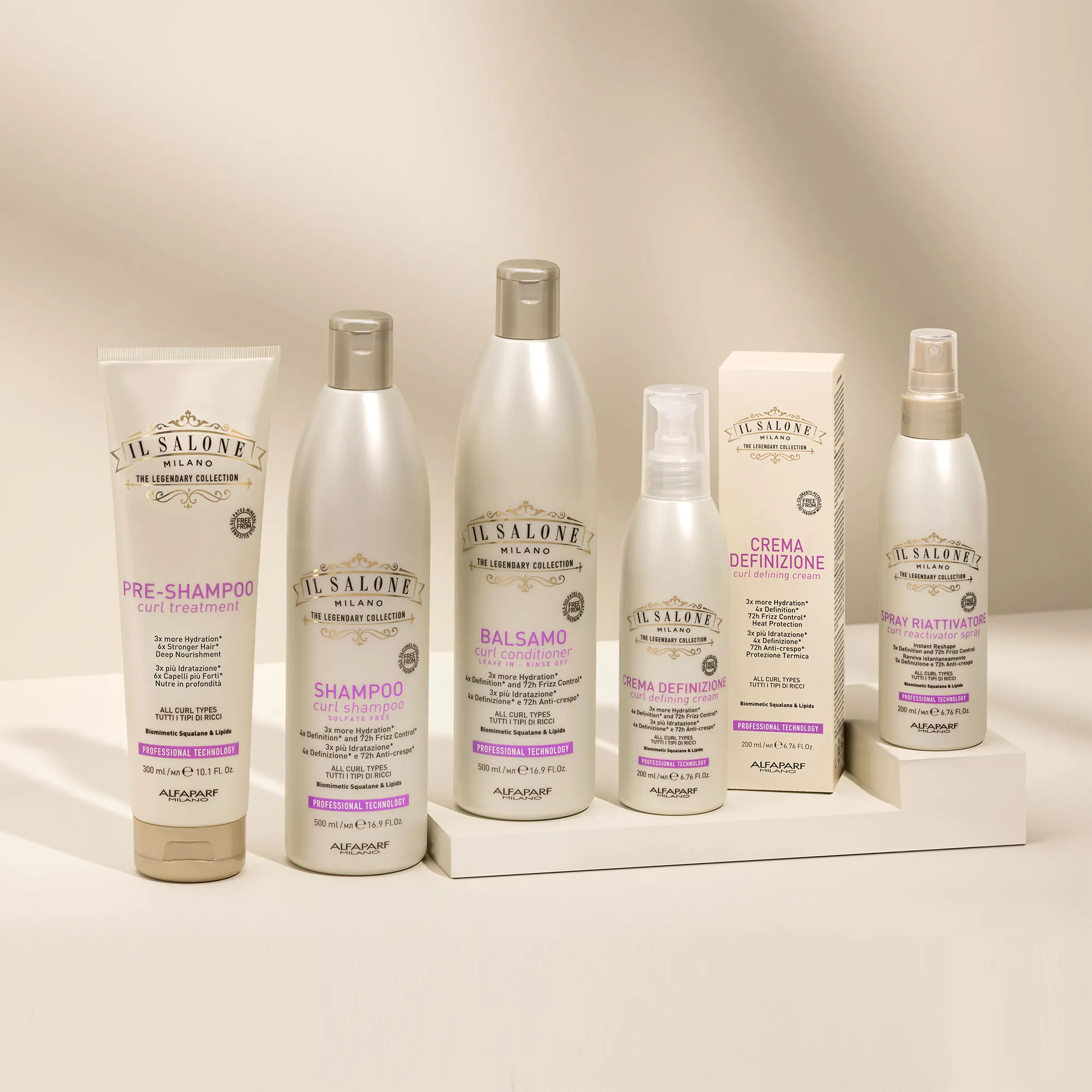 Produktová řada Curl s technologií Biomimetic poskytuje hloubkovou hydrataci pro silnější a poddajnější vlasy bez krepatění.