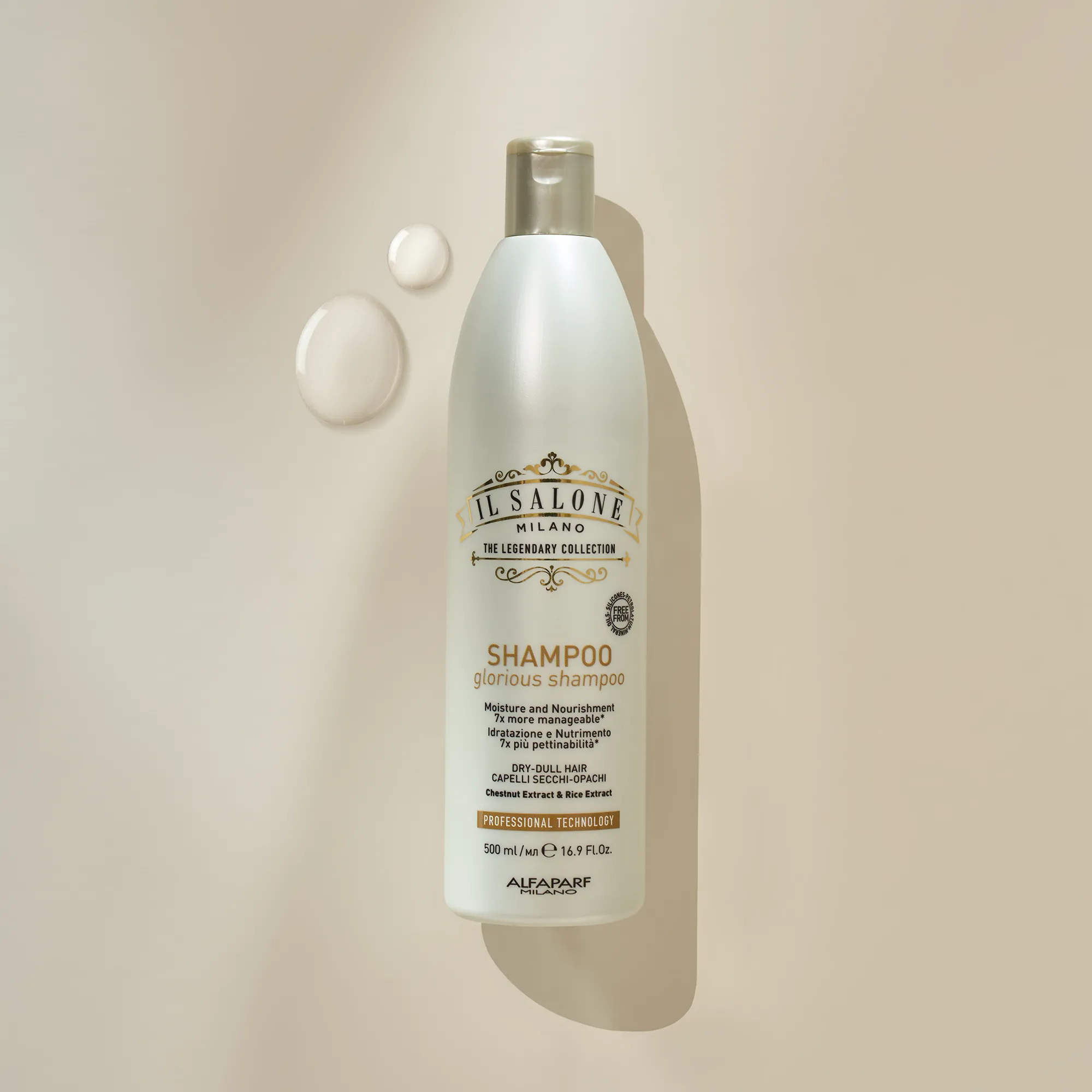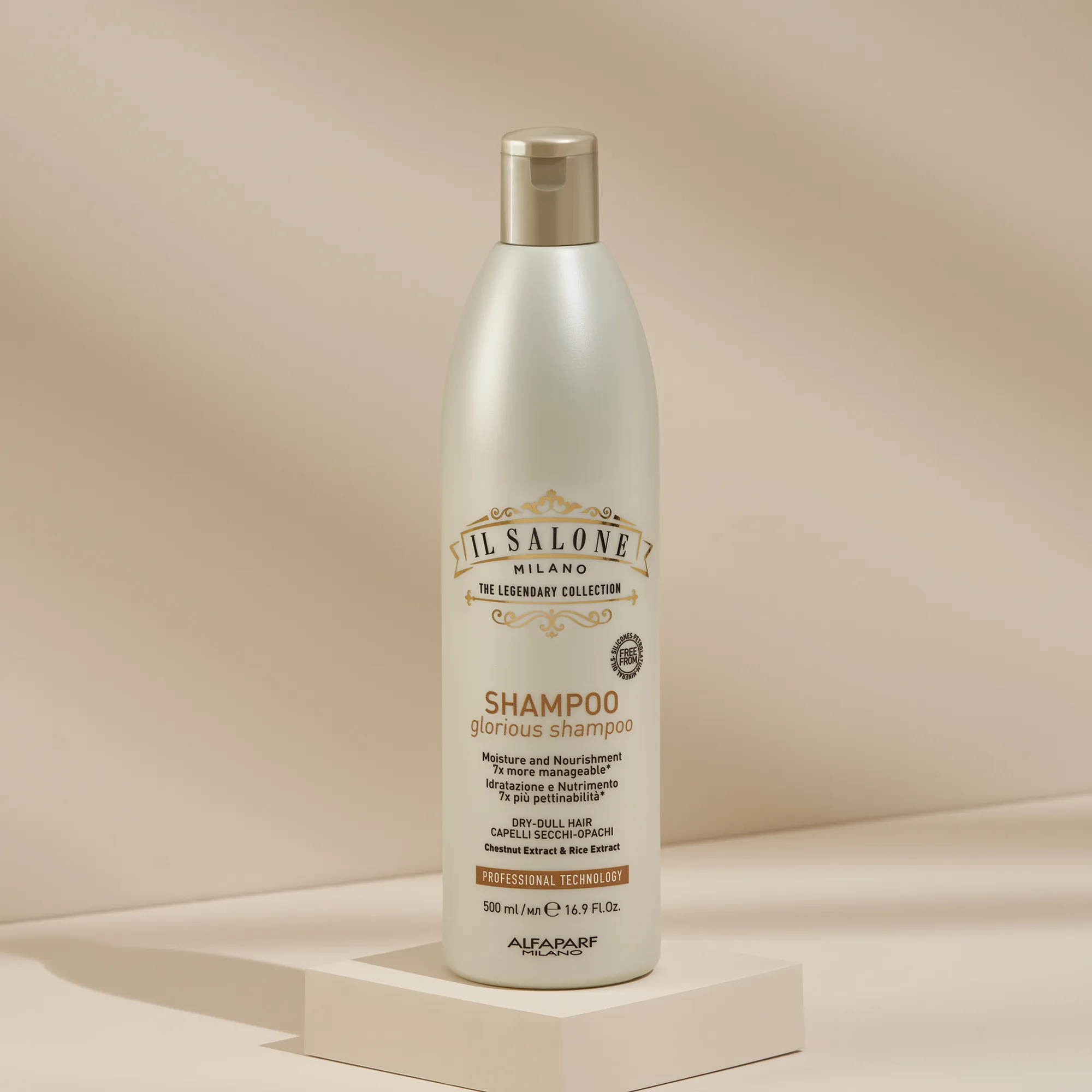 Objevte celou produktovou řadu Glorious : složení s výtažkem z kaštanu, rýže, pšeničnými proteiny a ceramidy hloubkově vyživuje a hydratuje vlasy a dodává jim novou vitalitu. Veganské složení free from parafínů, vazelíny, minerálních olejů a barviv.