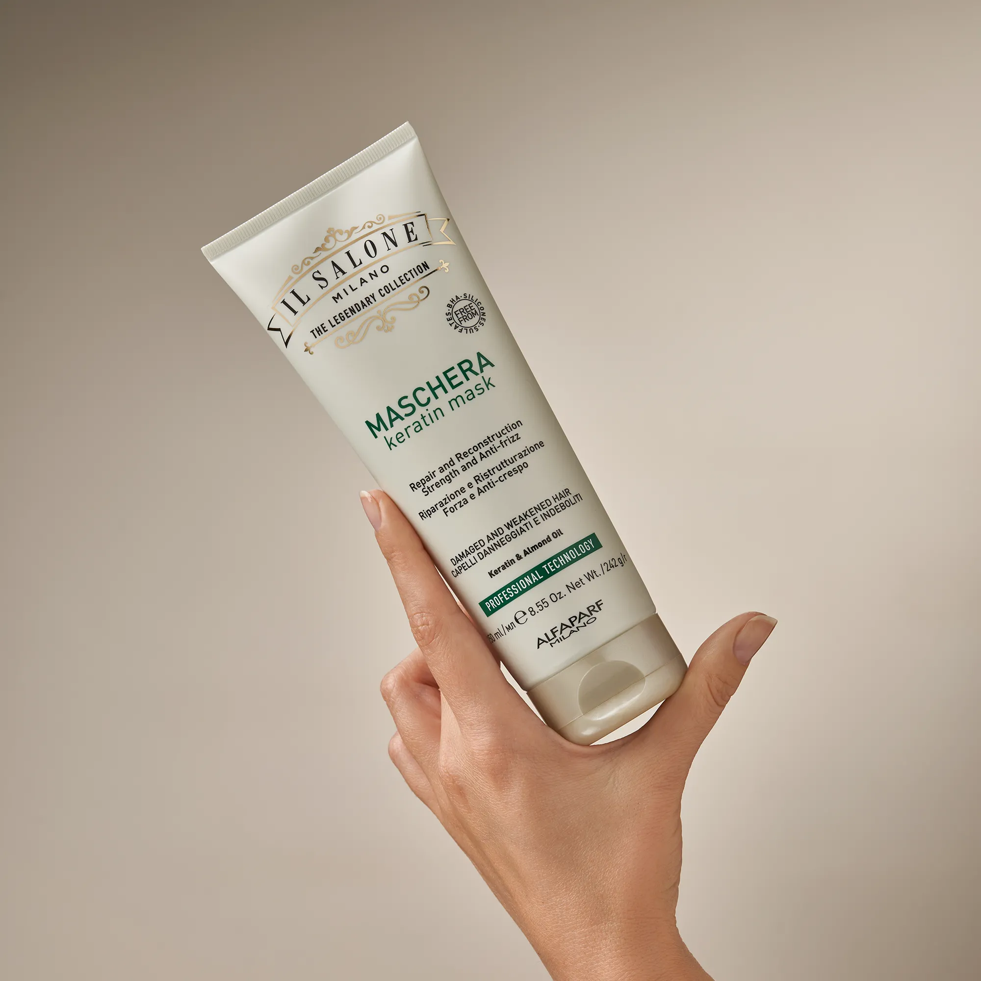 Po použití Keratin šamponu aplikujte na délky a konečky vlasů. Vmasírujte a nechte 5 minut působit. Důkladně opláchněte.
