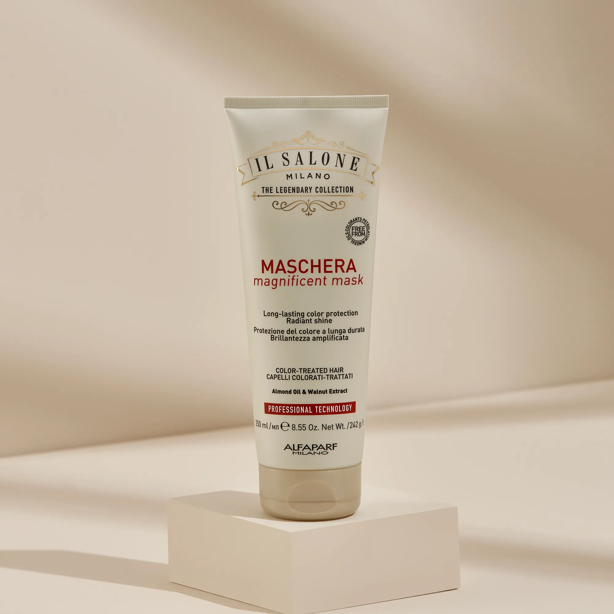 Objevte produktovou řadu Magnificent : mandlový olej a extrakt z vlašských ořechů pečují o barvené vlasy a dodávají jim extrémní intenzitu. Veganské složení free from parafínů, vazelíny, minerálních olejů a barviv.