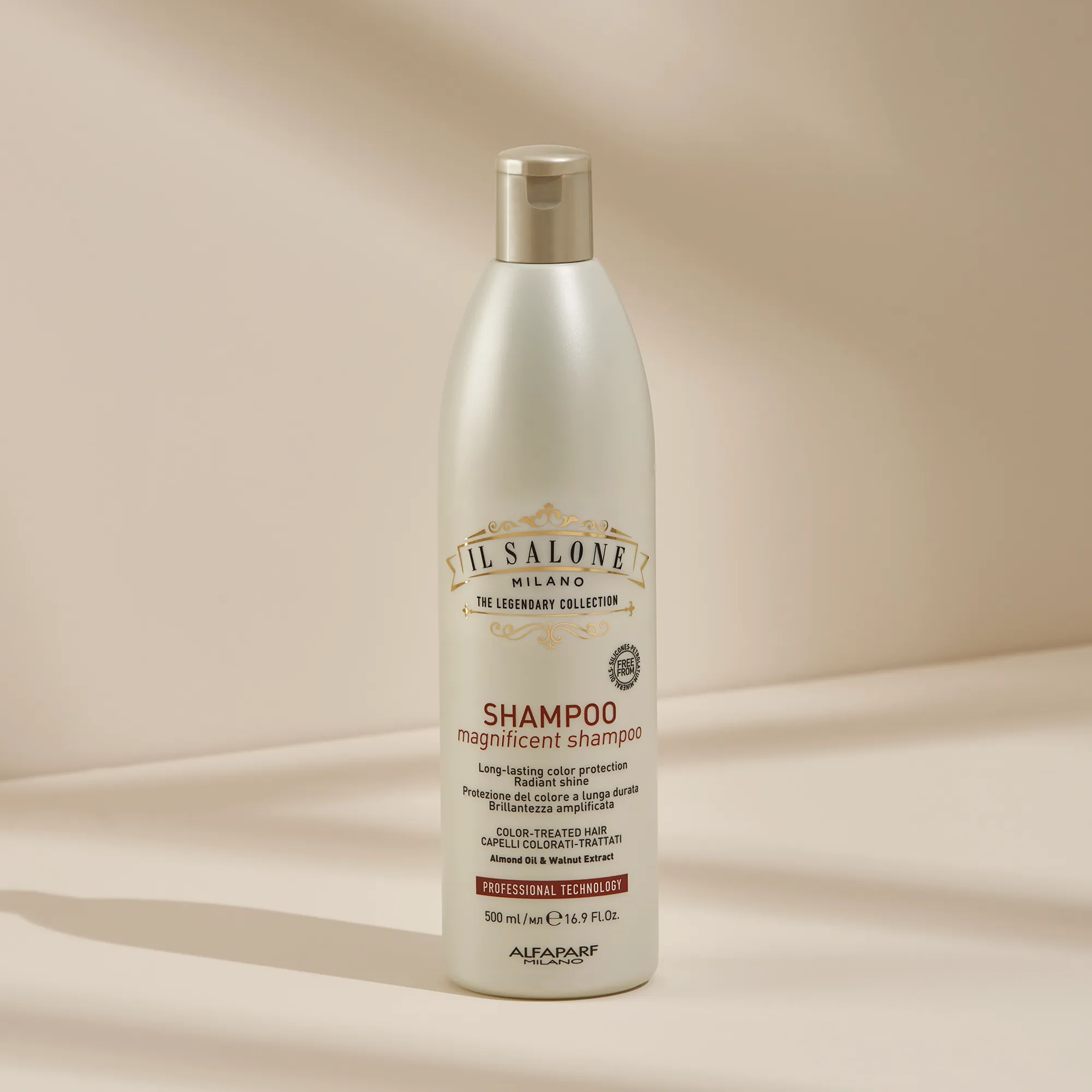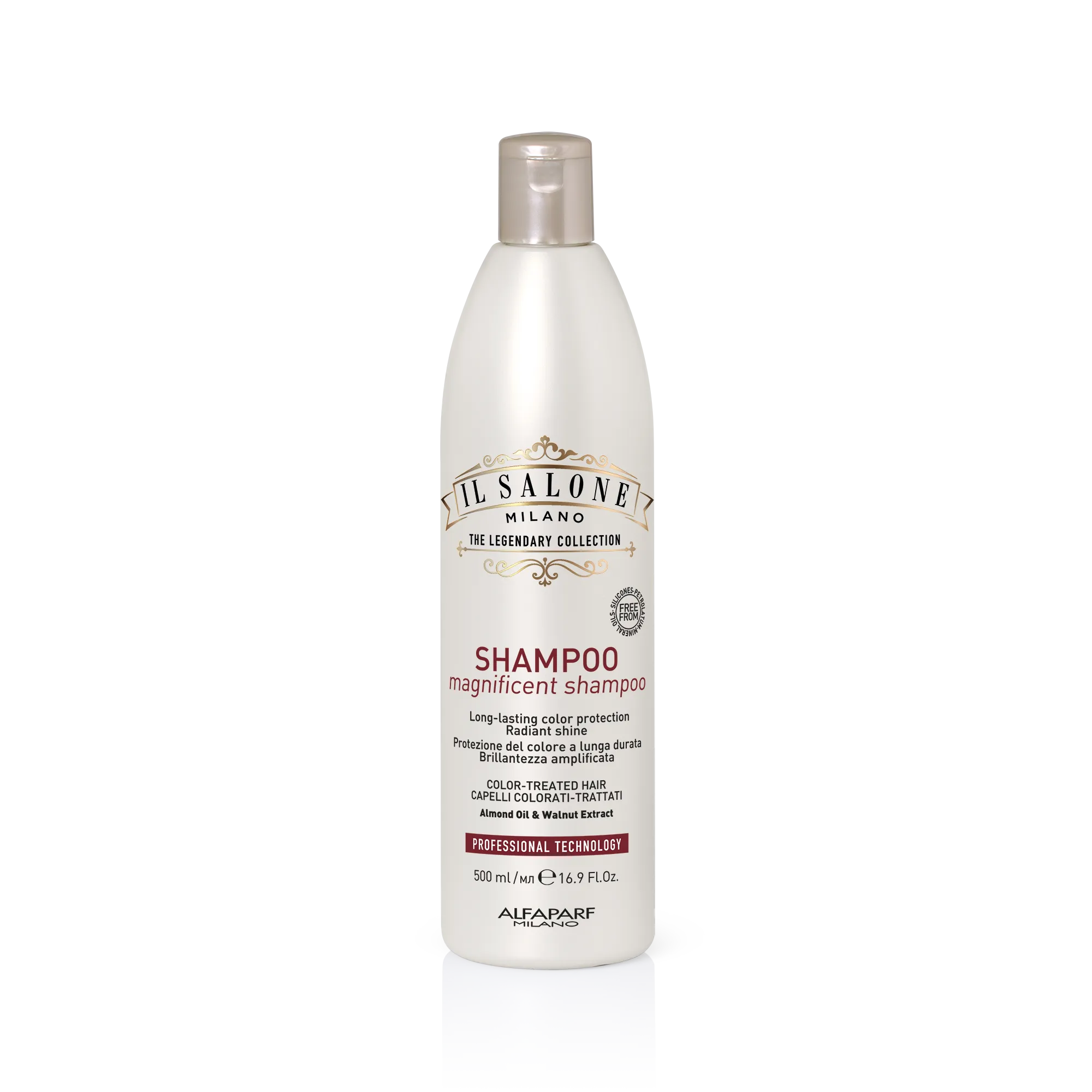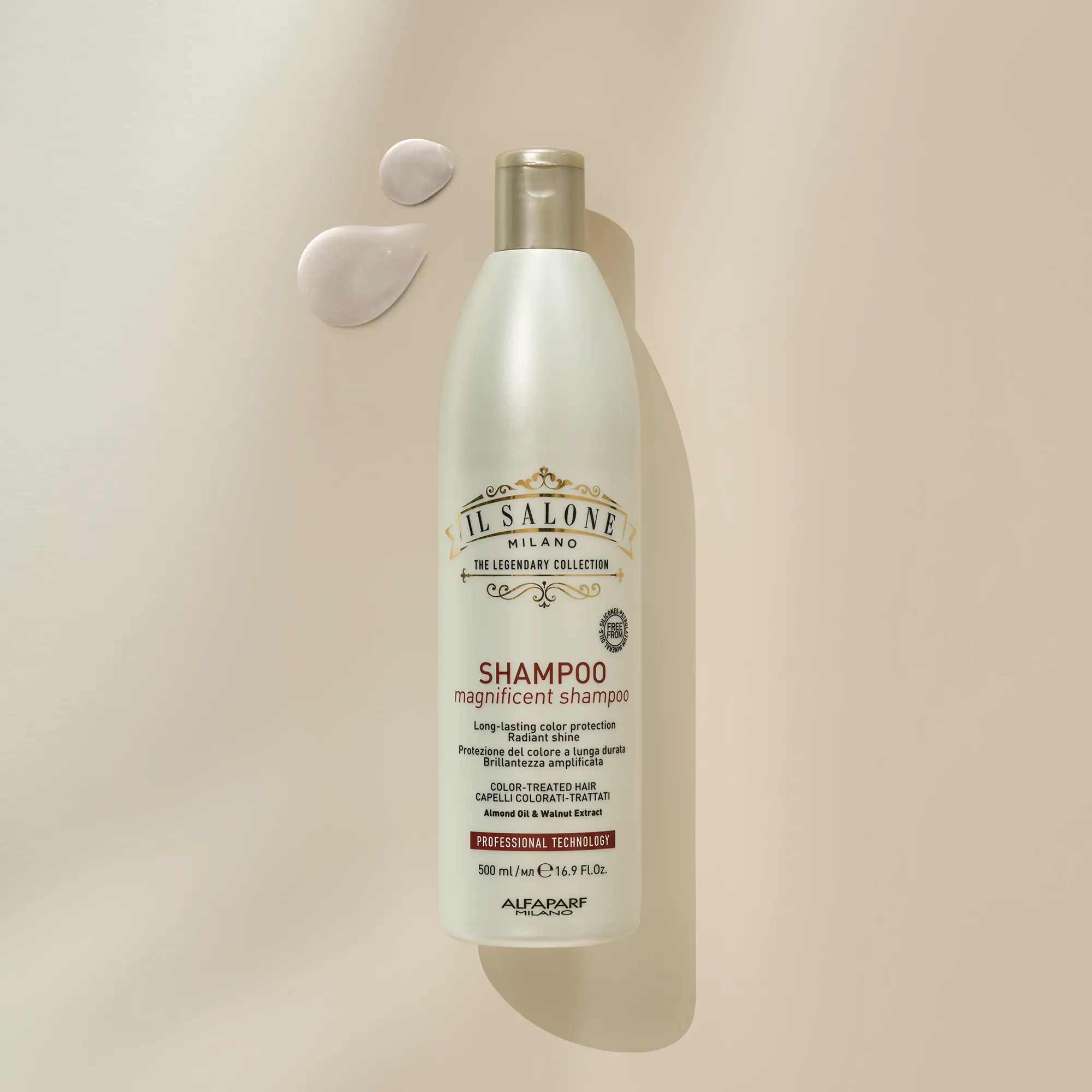 Objevte produktovou řadu Magnificent : mandlový olej a extrakt z vlašských ořechů pečují o barvené vlasy a dodávají jim extrémní intenzitu. Veganské složení free from parafínů, vazelíny, minerálních olejů a barviv.