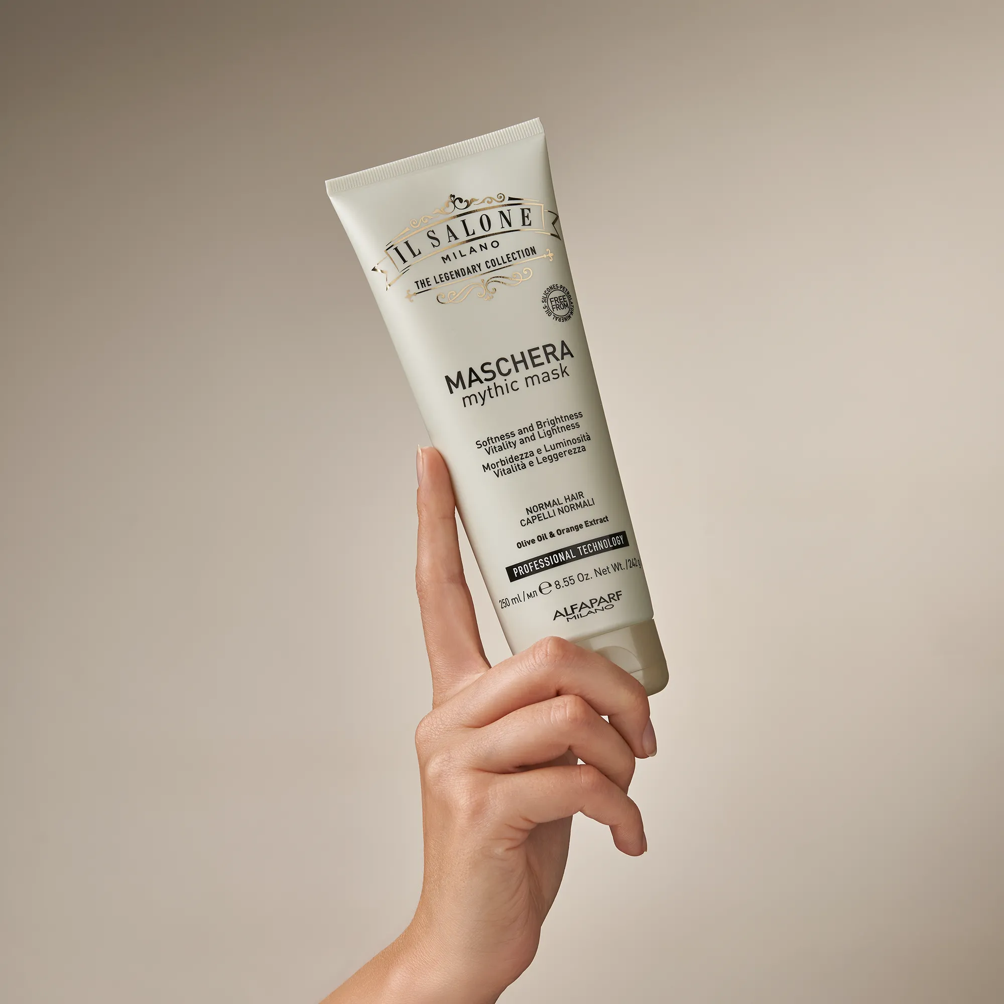 Objevte produktovou řadu Mythic . Složení s olivovým olejem a výtažkem z pomeranče je vhodné pro normální vlasy a pro každého, kdo chce o své vlasy šetrně pečovat. Veganské složení free from parafíny, vazelínu, minerální oleje a barviva.