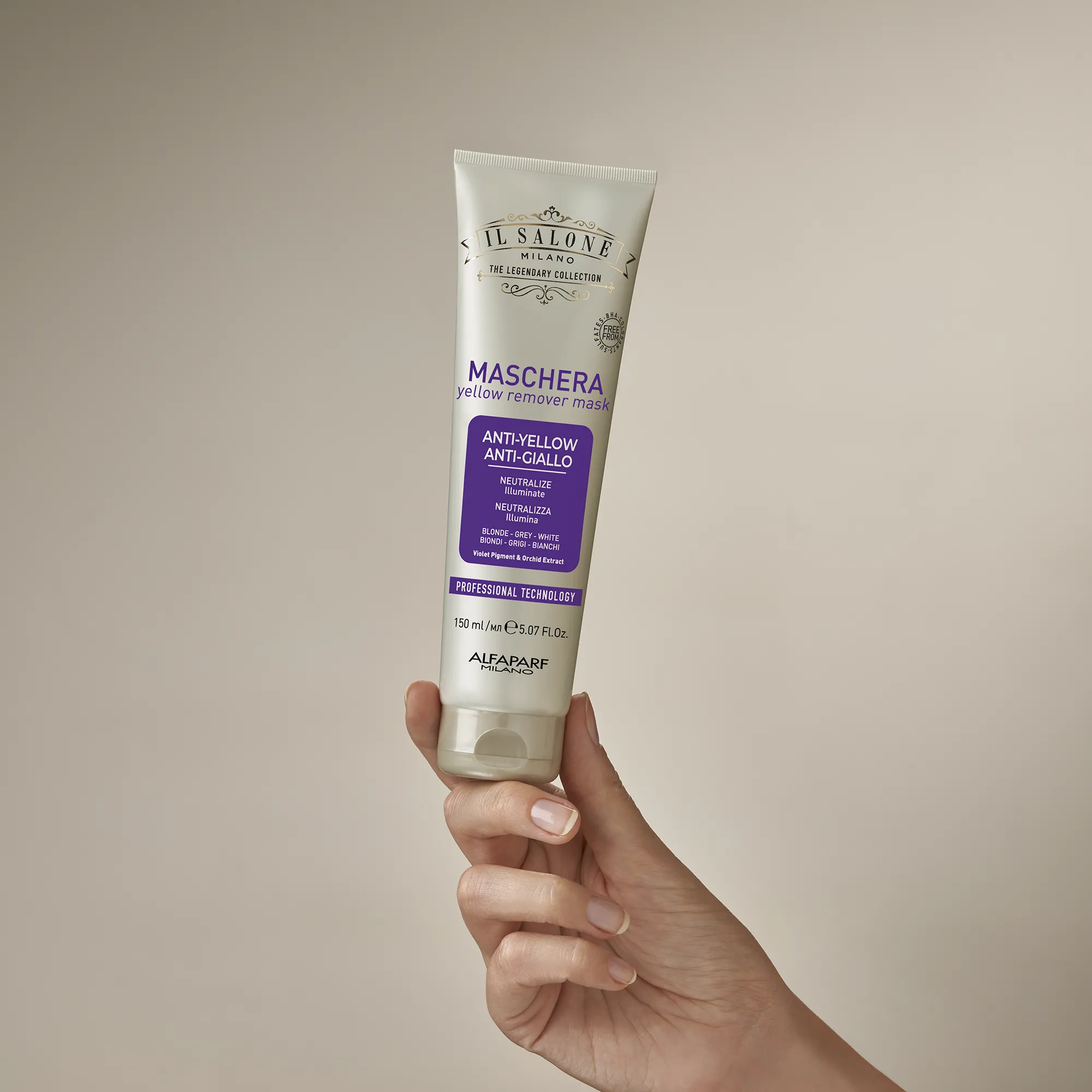 Objevte produktovou řadu Yellow Remover . Složení s fialovým pigmentem a výtažkem z orchideje neutralizuje žluté tóny, hloubkově vyživuje vlasy a obnovuje jejich přirozený lesk, aby byly hebké a viditelně zdravě vypadající. Veganské složení, které free from vazelínu, minerální oleje a parafíny.